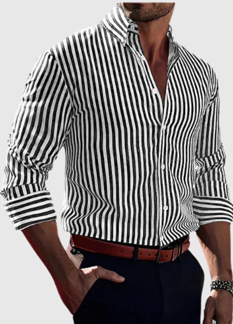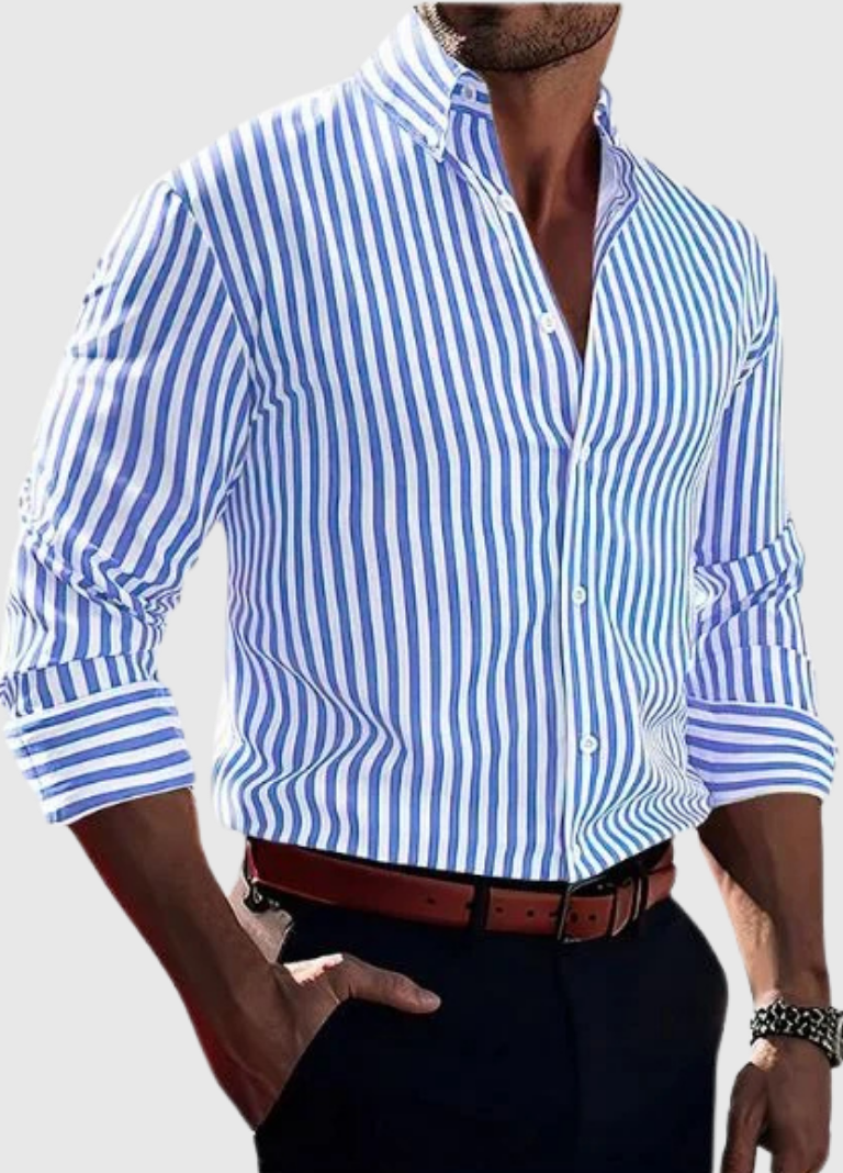 Crafted from a soft, breathable fabric, the Porter Striped Shirt delivers all-day ease while maintaining a polished, structured appearance. Its modern slim-fit silhouette follows the body naturally, creating a flattering profile that feels comfortable and reassuringly classic. The vertical stripe pattern subtly elongates the torso, adding definition and balance to any build. From pairing it with tailored trousers to layering it over a simple tee, this shirt adapts effortlessly to your personal style.